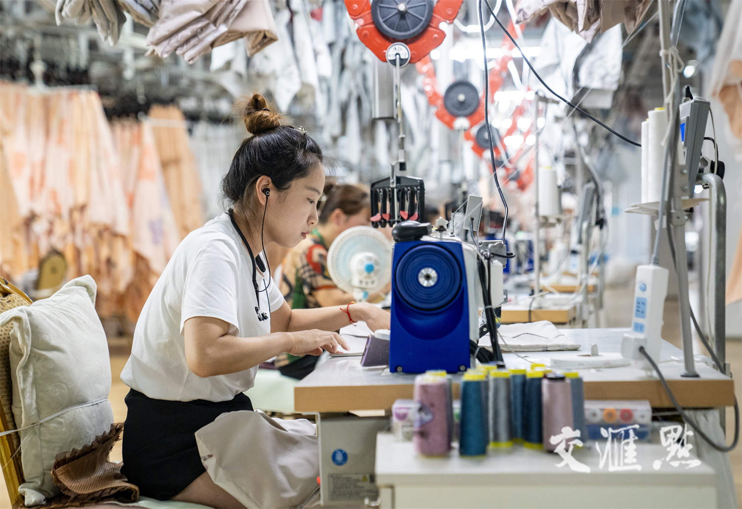 6月25日,南通市通州区川姜镇一家纺公司智能车间内,工人在生产线上忙碌。翟慧勇 摄