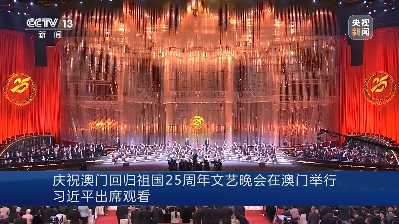 新华社澳门12月19日电(记者 赵博、张研)镜海扬帆风正劲,濠江欢歌向未来。庆祝澳门回归祖国25周年文艺晚会19日晚在澳门东亚运动会体育馆举行。中共中央总书记、国家主席、中央军委主席习近平观看了演出。