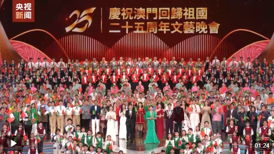 晚会最后,习近平同全场观众一起高唱《歌唱祖国》,祝愿伟大祖国繁荣富强,祝福澳门明天更加美好。习近平向全体演员和观众挥手致意,晚会气氛被推向高潮,歌声和掌声汇成欢乐的海洋。