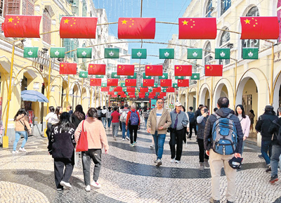 连日来,澳门街头洋溢着热烈喜庆的氛围,庆祝澳门回归祖国25周年。本报记者 柴逸扉摄