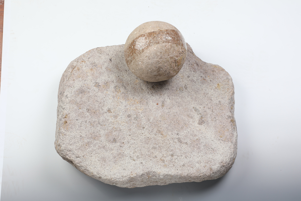 上山文化下汤遗址出土石磨盘、磨石。浙江省文物考古研究所 供图
