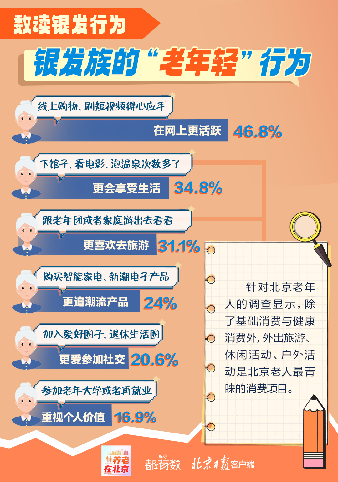 文旅部等部门日前公布2024年智慧旅游适老化典型案例,指出要持续弥合数字鸿沟,让老年人共享旅游发展成果。事实上,老年人消费已展现出年轻化趋势,以旅游为代表的休闲消费正逐步升级。“银发族”与年轻人的消费重合度越来越高——