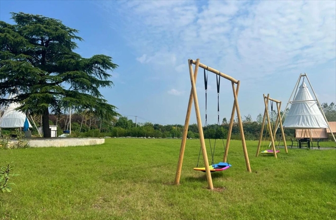 秋千、小型挖土机、露营烧烤、休闲垂钓……除了各具特色的农作物,随处可见的互动设施与采摘游客也是石全家庭农场的靓丽风景。“这样的综合性农场不仅满足我们就近出行的度假需求,还能寓教于乐,让孩子在玩乐的同时收获知识,所以我们就趁周末开车过来了。”一位来自上海的家长说道。