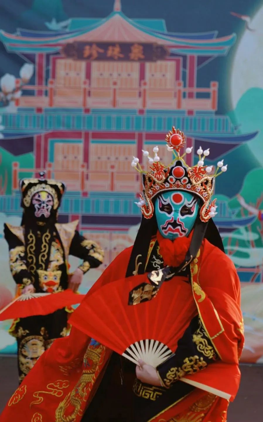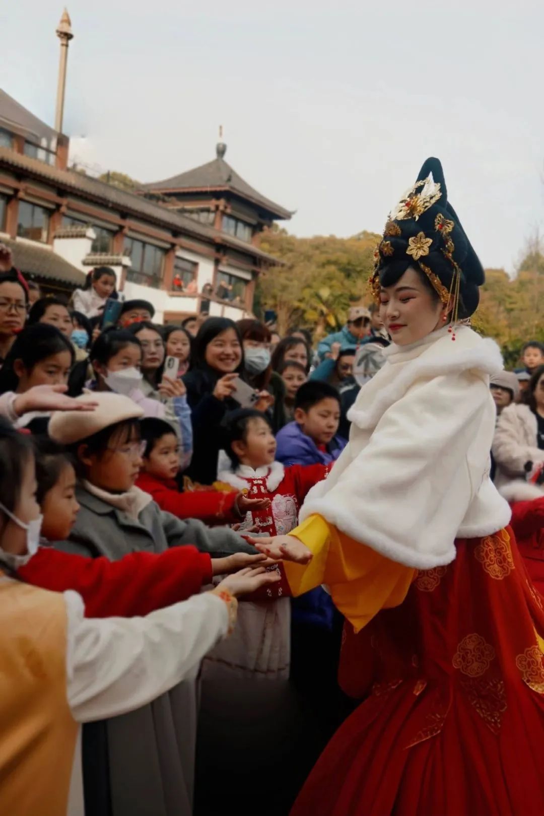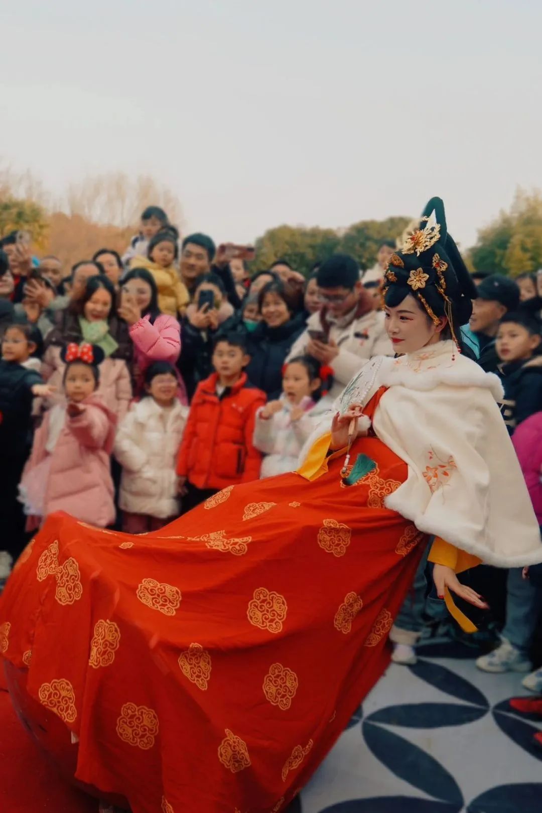 新年伊始,贵客临门。珍珠泉风景区以盛唐迎宾礼欢迎四方来客,华服仕女挑灯开道,古风NPC巡游互动,让游客穿越千年,领略繁华盛景。