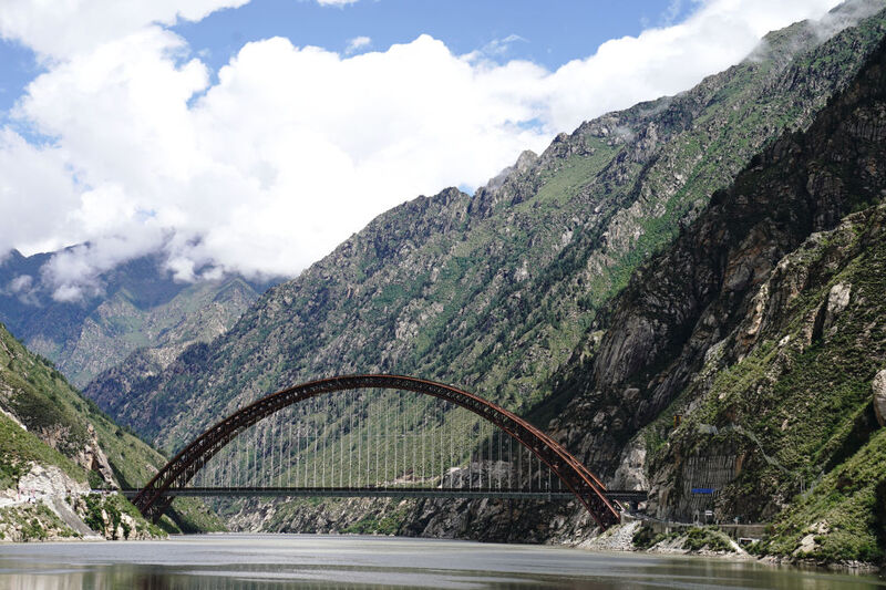 藏木雅鲁藏布江双线特大桥全长525.1米,主拱跨径430米(2021年7月11日摄)。 新华社记者 刘洪明 摄