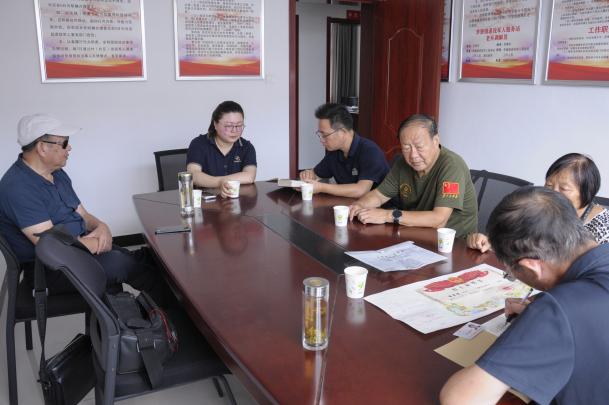 9月3日这天,镇退役军人服务站张红伟站长组织烈士后代和红色故事传承人缪文山、缪根山,红色先锋志愿者徐准安等相关人员专程到李堡退役军人服务站调阅历史资料,