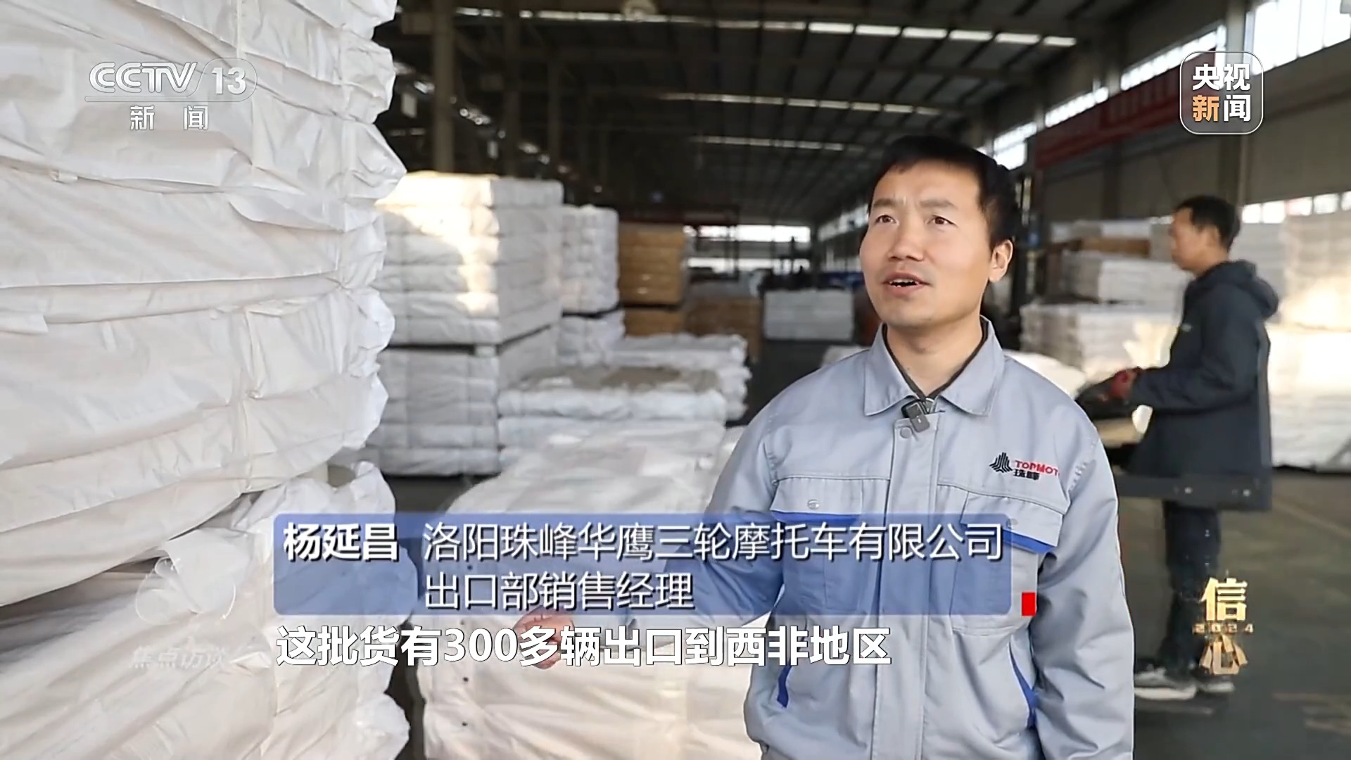 洛阳珠峰华鹰三轮摩托车有限公司出口部销售经理 杨延昌:“这批货有300多辆出口到西非地区,目前订单量已经达到了3万台,排到了25年3月份。”