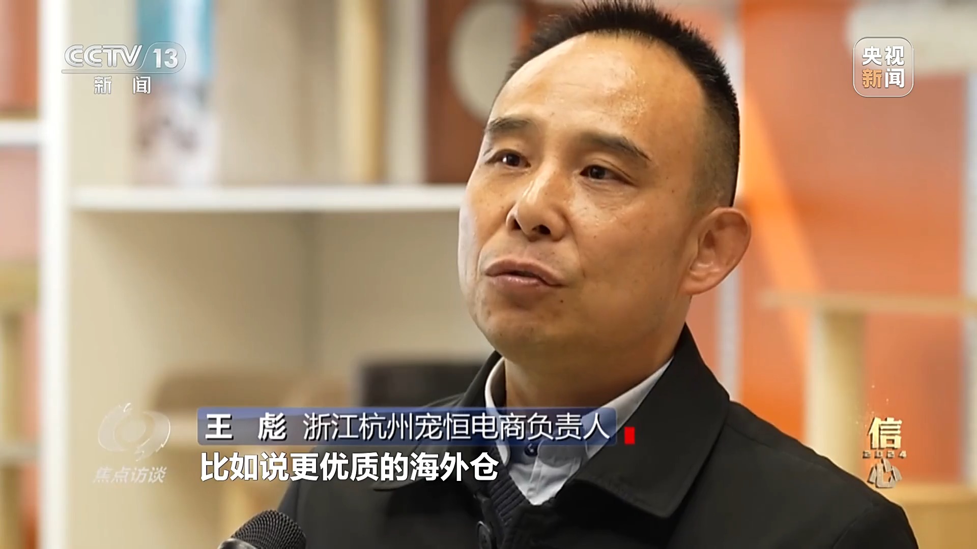 浙江杭州宠恒电商负责人 王彪:“我们最大的痛点是最后一公里的派送。怎么解决最后一公里呢?就要有自己的仓库,借助于海外的资源,比如说更优质的海外仓。”