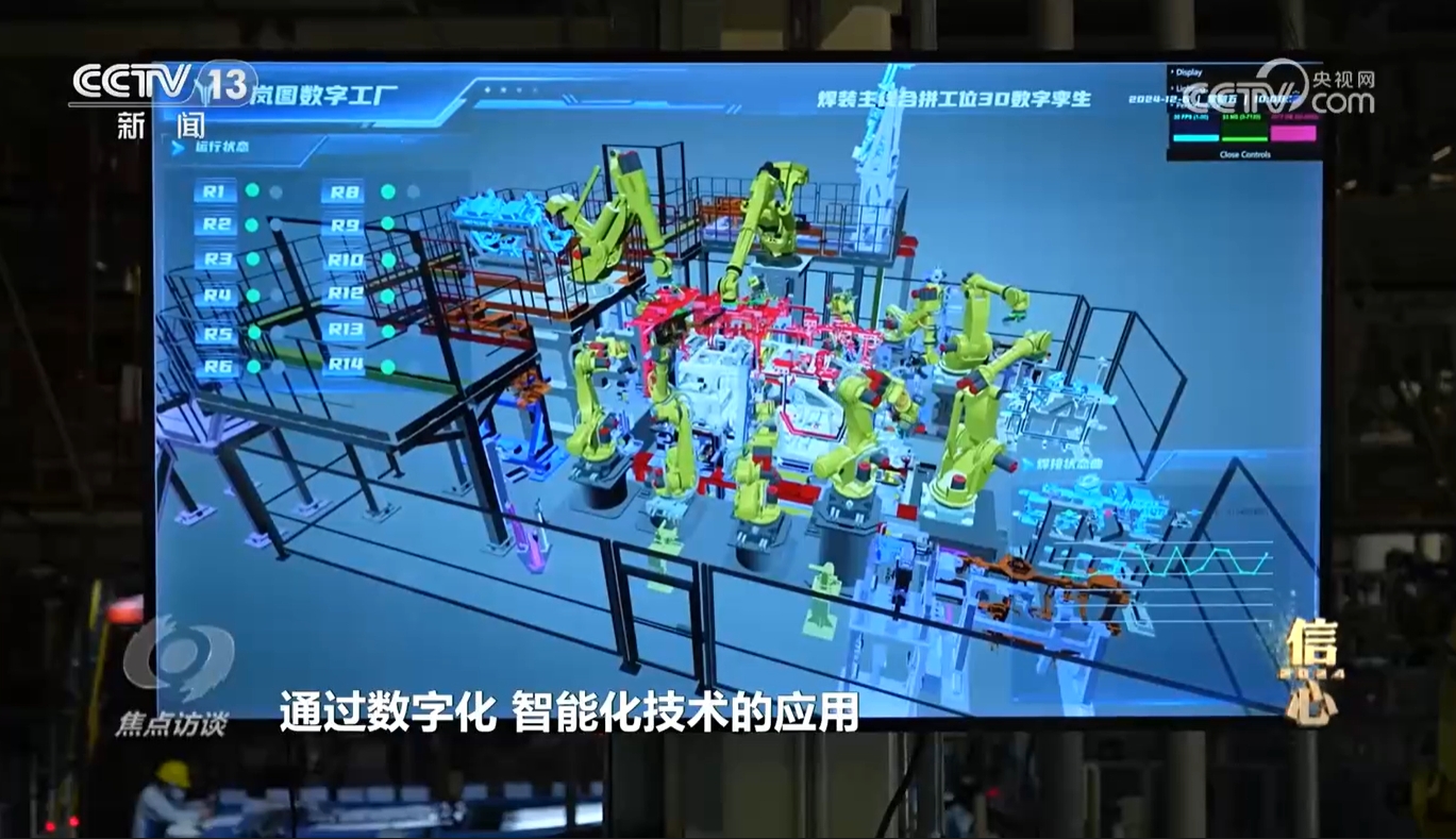 卢放:“这个智能制造工厂采用了‘5G+工业互联网’、大数据、云计算、数字孪生等信息化技术,是国家级的智能制造示范工厂,通过数字化、智能化技术的应用,极大地提升了生产效率。可以满足4款车型的混流生产,同时能够满足上万种不同配置车型的随机生产,只有这样才能满足用户个性化需求,目前这个工厂可以做到118秒就能下线一台整车。”