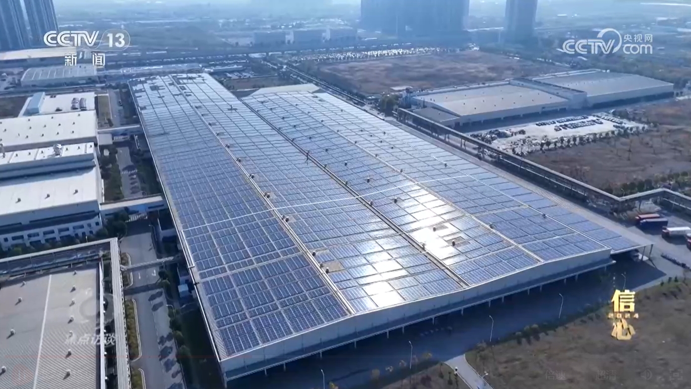 卢放:“光伏项目一年生产的绿色清洁可再生能源,占到这个工厂能源消耗的13%以上。未来清洁能源的消耗占比达到25%以上,目标就是用绿色能源生产绿色新能源汽车。”
