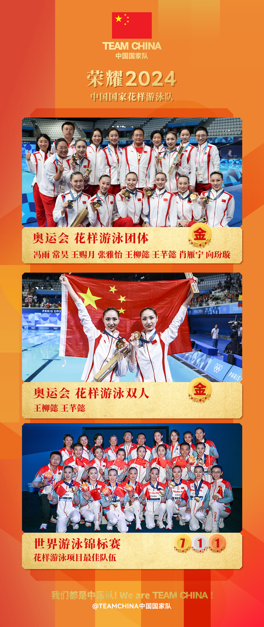 近日,TEAMCHINA中国国家队发布系列海报,盘点2024中国队荣耀时刻。海报持续更新中,你对哪些拼搏瞬间印象深刻?