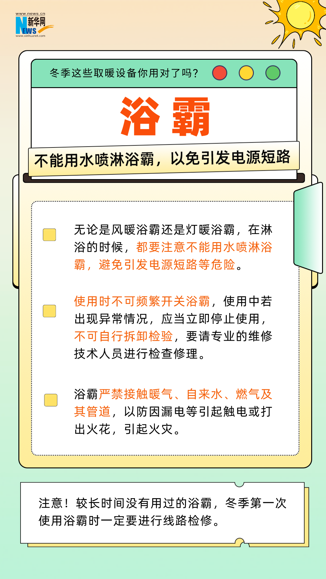 冬季到来,随着气温降低,火炉、电暖器、电热毯、暖手宝、浴霸等取暖设备开始被大家广泛使用。在享受温暖的同时,一定要注意,如果使用不当会引发安全隐患甚至危及生命!冬季取暖设备如何放心选安心用?这份实用指南送给你。