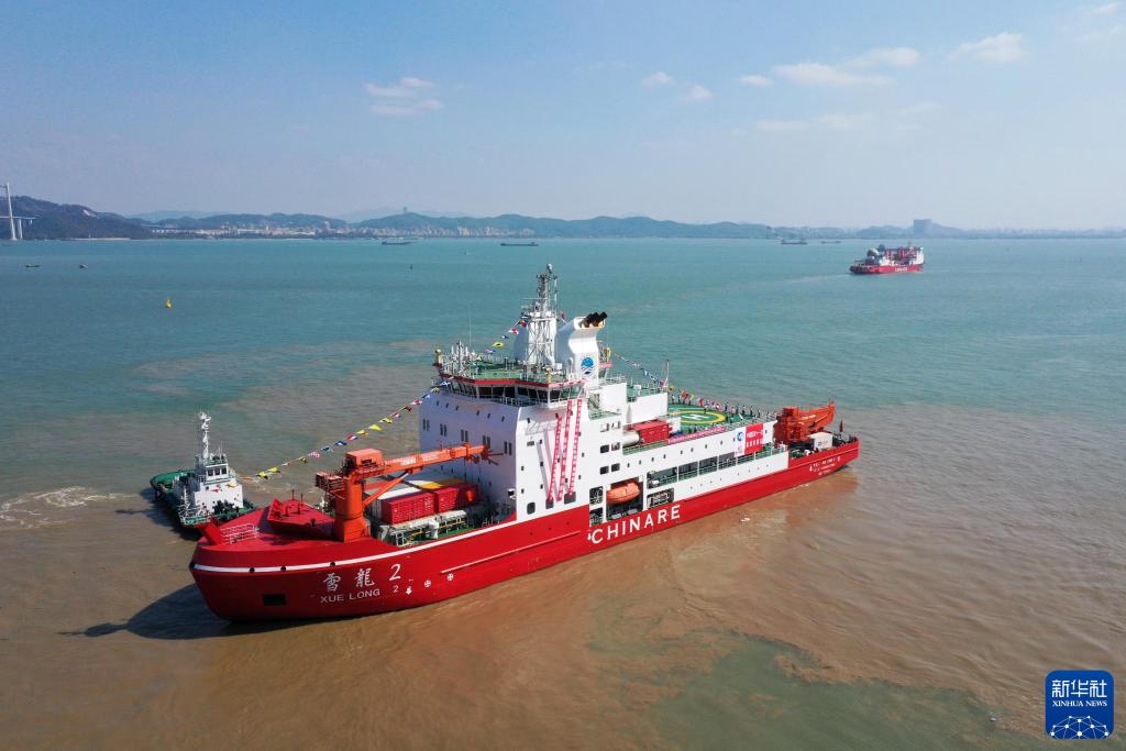 2024年11月1日,执行中国第41次南极考察任务的“雪龙”号和“雪龙2”号船从广州南沙国际邮轮母港码头出发。新华社记者 黄国保 摄
