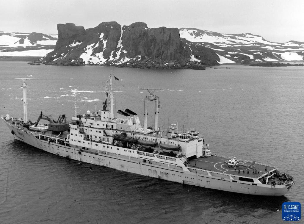 1984年12月26日,中国南极考察队胜利驶抵南极洲乔治王岛民防湾。这是“向阳红10号”科学考察船。新华社记者 戴纪明 摄