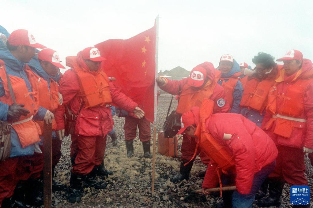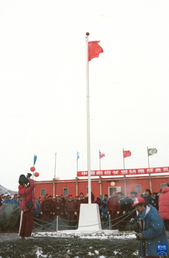 1985年2月20日,中国长城站在乔治王岛举行落成典礼,南极洲上第一次升起了五星红旗。新华社记者 朱幼棣 摄