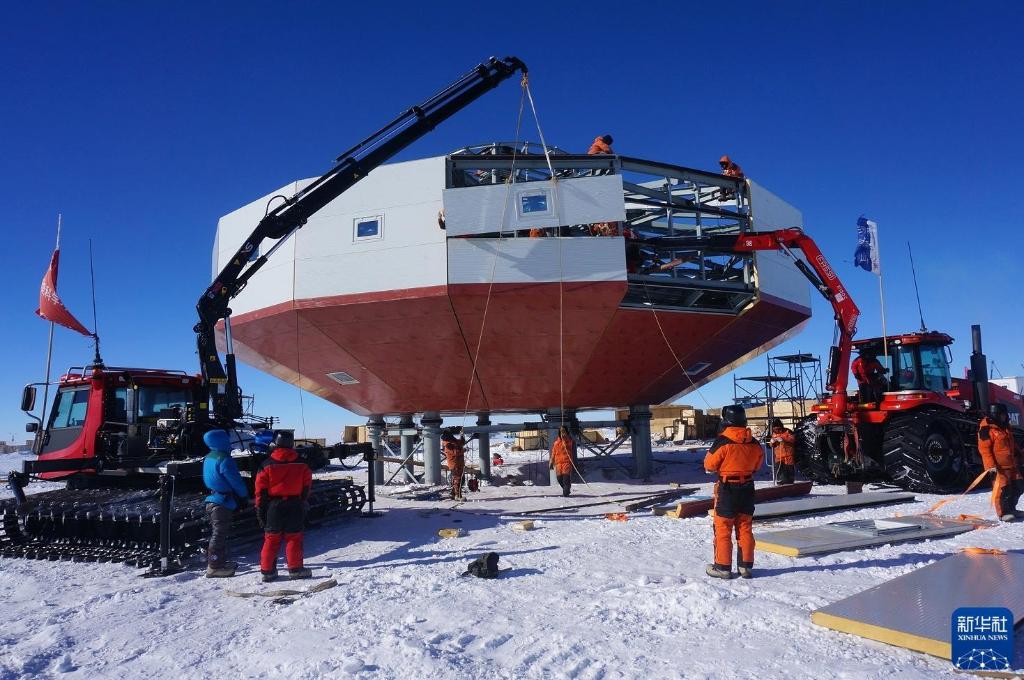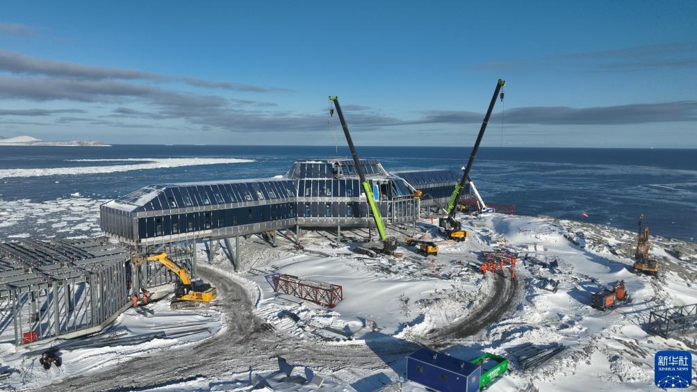 2024年1月25日拍摄的中国南极秦岭站建设现场。新华社发(王海楠 摄)