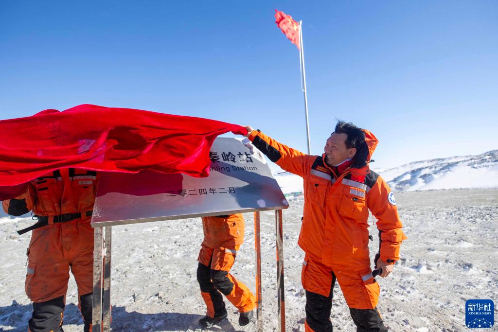 2024年2月7日在中国南极秦岭站拍摄的揭牌仪式。新华社记者 周圆 摄