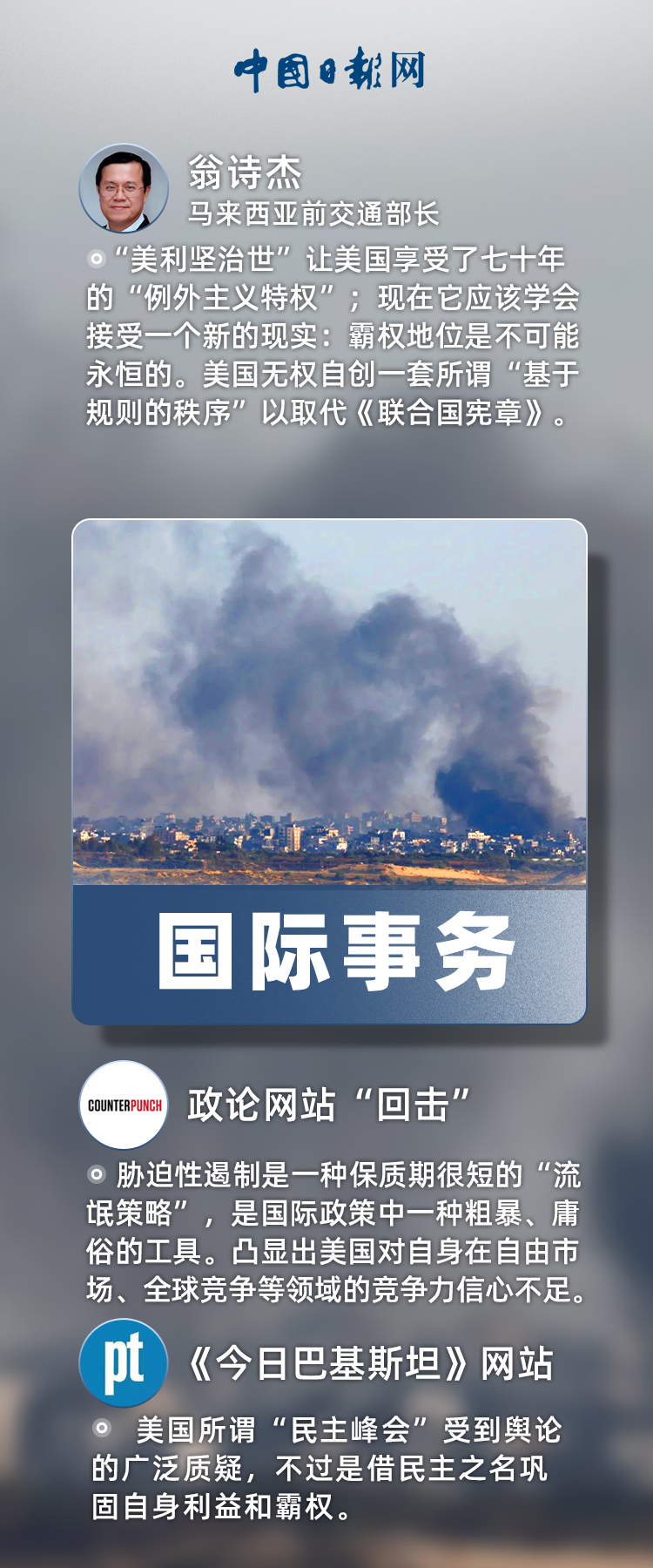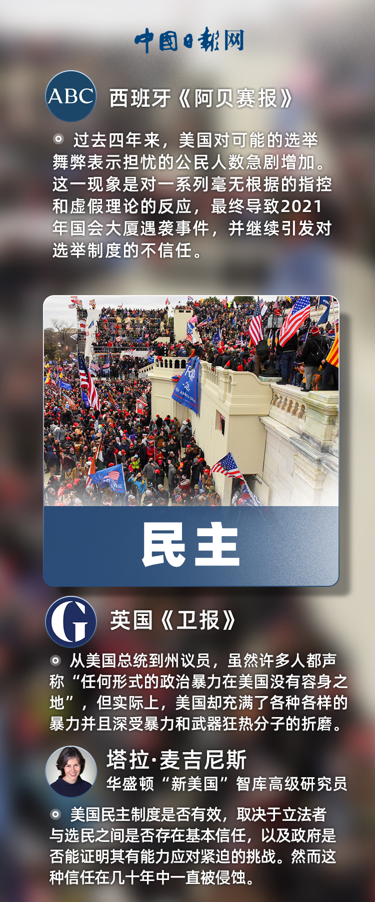 2024年,美国国内枪支、民主、通胀、移民等问题依旧没有得到妥善解决,更有外溢的势头,对他国产生负面影响;在国际事务中,美国胡乱挥舞“关税大棒”、对他国事务长臂管辖、搅乱地缘政治局势……这一年,美国在内政外交上的一系列问题和做法受到本国及国际社会的广泛质疑,其国际形象似乎依然没有改善。