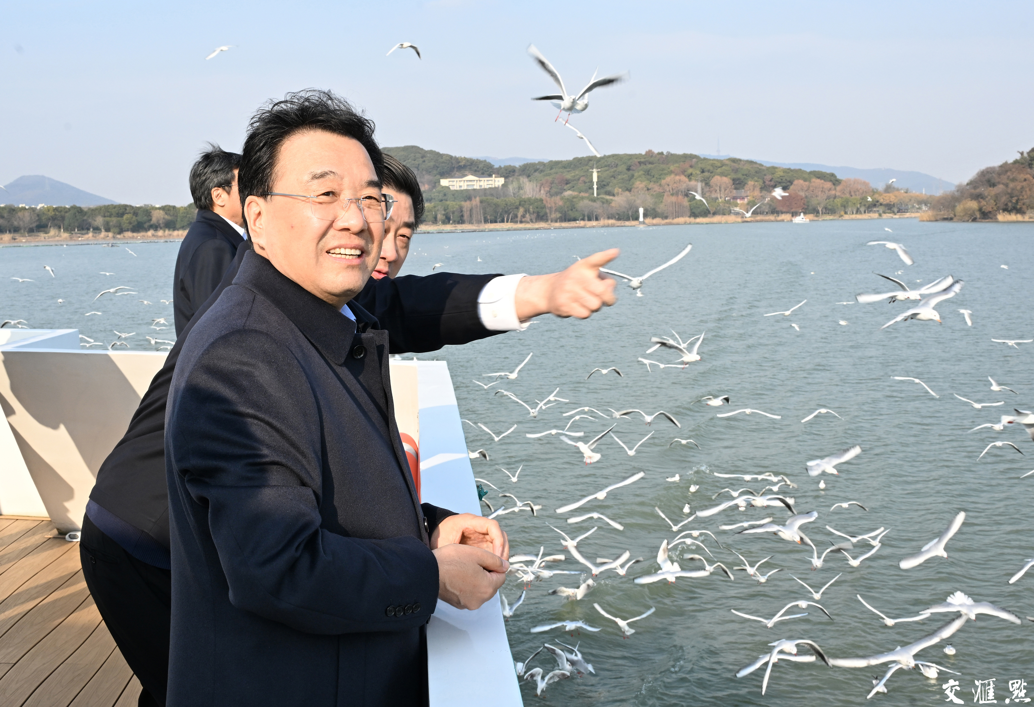 在无锡期间,信长星、许昆林还调研了太湖生态环境治理工作。冬日的太湖,波光粼粼,远道而来的红嘴鸥翩翩起舞,吸引众多游客前来观赏。信长星、许昆林来到梅梁湖区,实地察看水质。去年太湖水质指标全年达到Ⅲ类,是依法治理以来首次达到“良好”湖泊标准。他们指出,太湖治理是全省生态文明建设的标志性工程,取得的阶段性成效十分不易,必须倍加珍惜。要乘势而上,坚持湖岸同治、流域共治,以控源截污和减磷控氮为主攻方向,持续解决突出生态环境问题,着力提升生物多样性,积极拓展生态产品价值实现路径,推动新一轮治太工作取得更大成效,展现人与自然和谐共生的美丽图景。