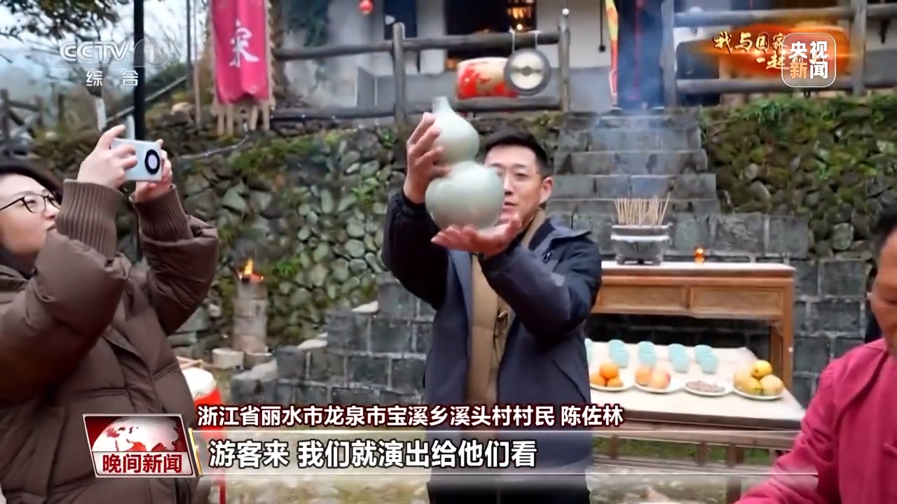 2025年新年这一天,浙江丽水溪头村里,龙泉青瓷的开窑仪式演出又开始了。锣鼓声中,游客也加入其中,感受着青瓷传统烧制技艺的独特魅力。