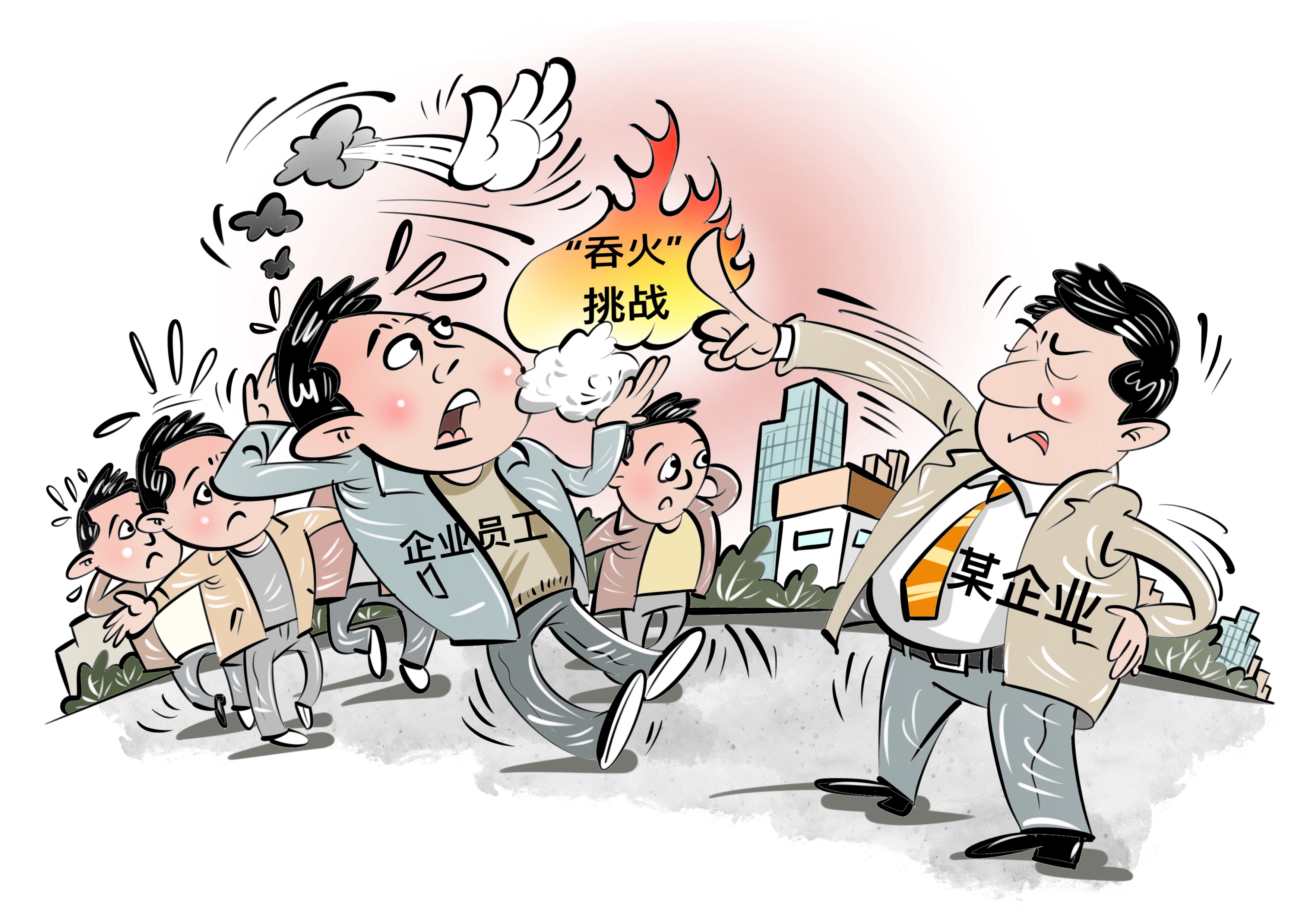 企业举行团建活动,为的是加强团队合作精神,提高员工之间的沟通与信任。而“吞火”是一种危险的行为,一不小心就有可能吸入过量烟雾或者被火烫伤。企业罔顾员工的生命健康,强迫员工“吞火”,无异于在“玩火”,不仅无法达到团建的目的,反而会让员工感觉失去尊严,受到羞辱和伤害,对企业的信任度和归属感大打折扣。