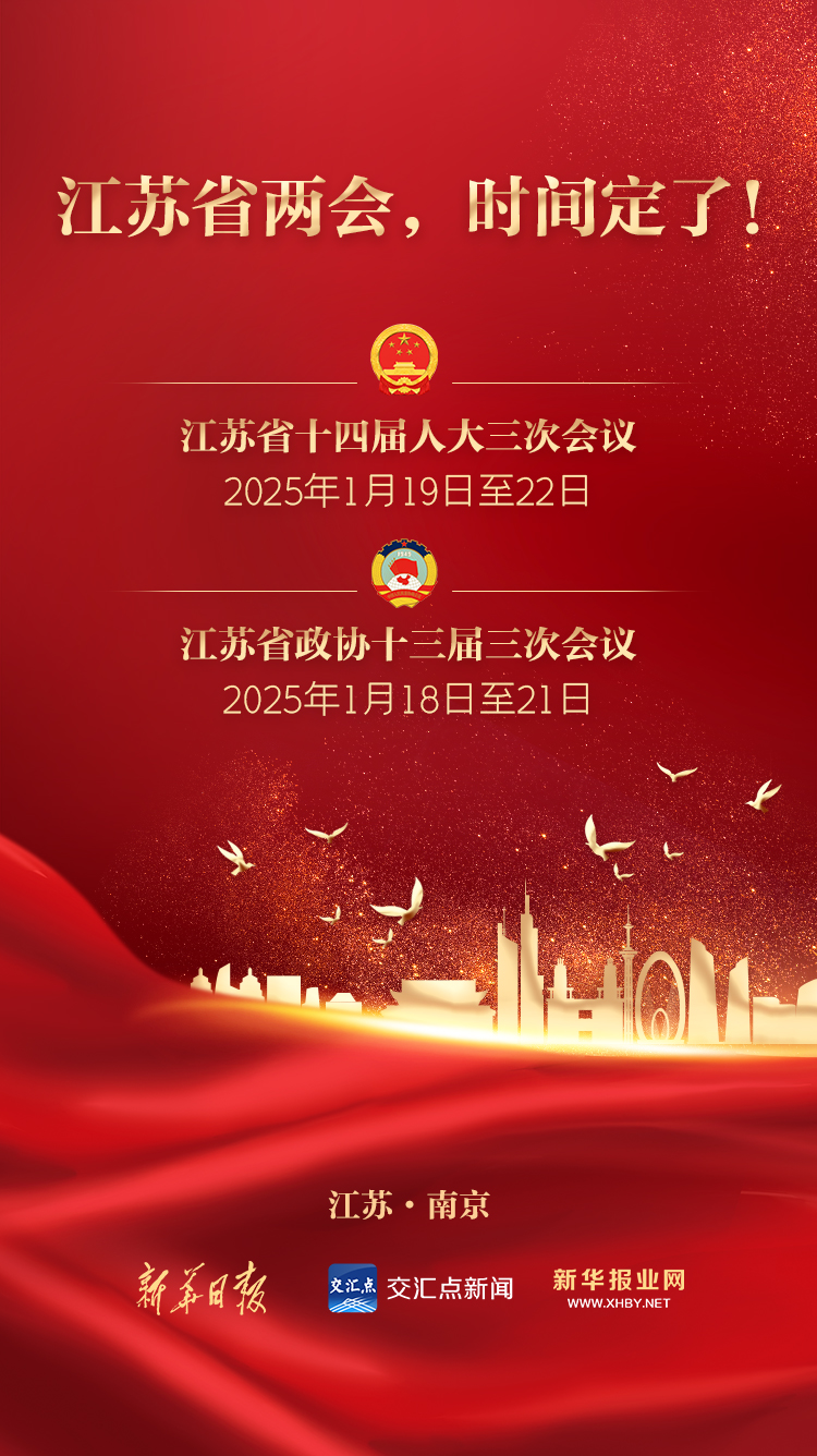 交汇点讯 记者1月8日从江苏省人大常委会办公厅获悉,江苏省十四届人大三次会议定于2025年1月19日至22日在南京召开,会期4天。