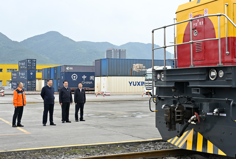 国内市场与国际市场、中国经济和世界经济在这里深度融合。在园区内的重庆铁路集装箱中心站,总书记在一辆列车前驻足凝望。
