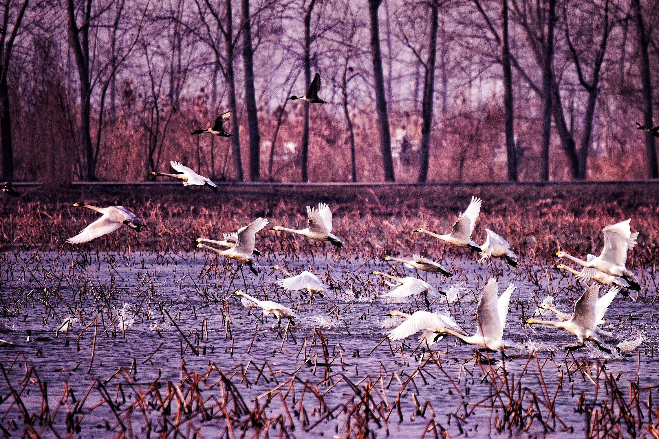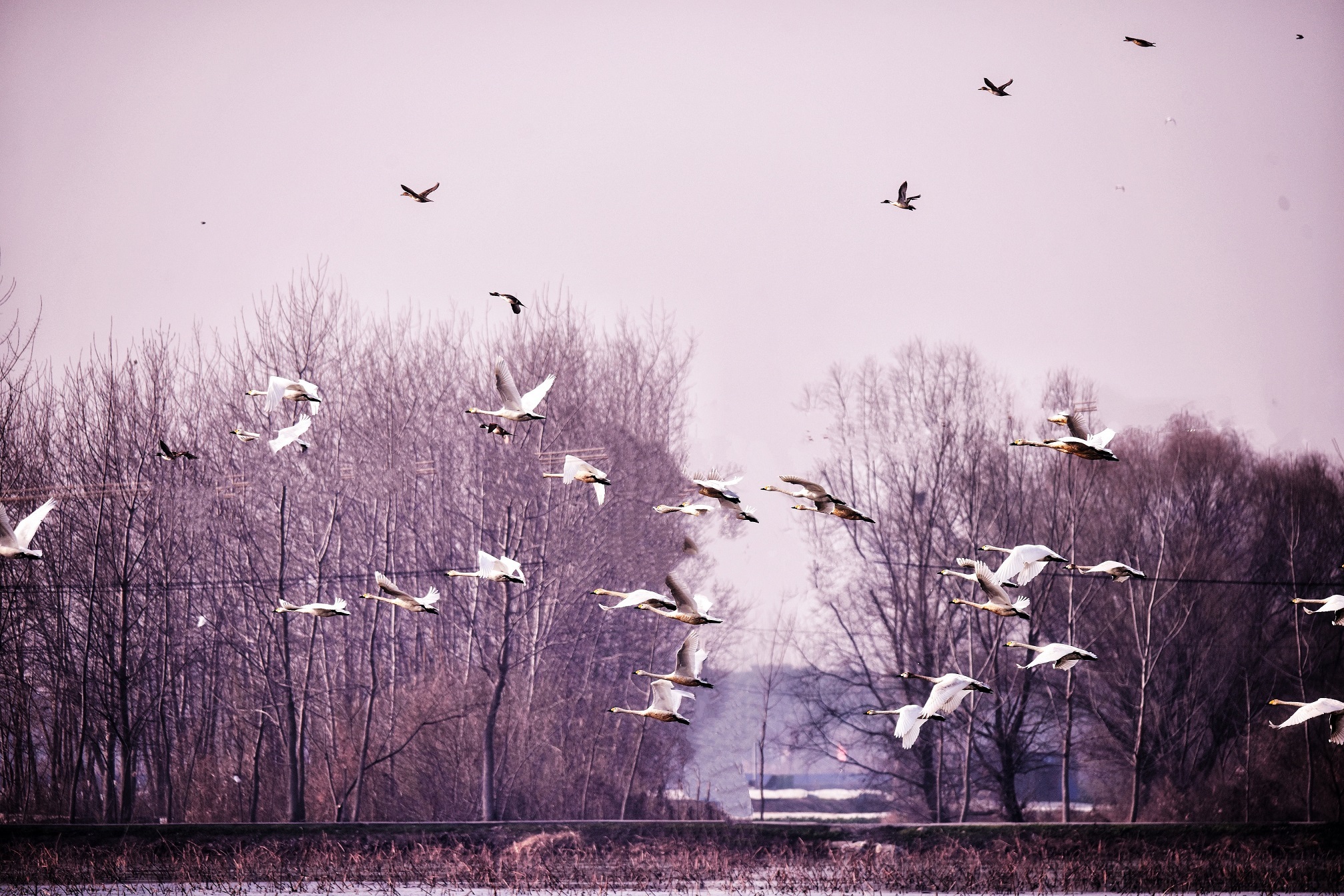 建湖地处“东亚——澳大利西亚迁徙通道”上,每年都有天鹅栖息或越冬。“近年来,天鹅飞临建湖的数量在不断增多。这次,我拍摄到的天鹅大约有150余只,如此大规模的天鹅飞到这里,在建湖还是第一次,创下最近几年天鹅越冬数量之最,建湖的生态环境越来越好了。”摄影爱好者吴铭说。