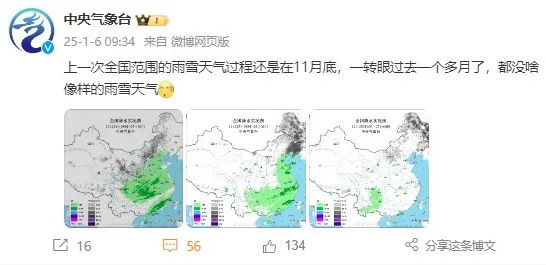 上一次全国范围的雨雪天气过程还是在2024年的11月底,转眼一个多月过去了,中东部很多地方雨雪依然在“迷路”中。广东、广西、江西部分站点自去年12月以来降水量为0毫米,广州上次下雨还是在2024年11月26日。