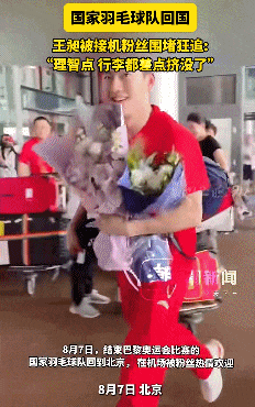 根据接机者在社交平台上发布的视频,王昶的粉丝在机场追着他跑,王昶捧花快速奔跑,但还是很多人手持拍摄设备拍照。