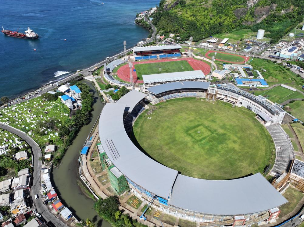 这是1月6日在格林纳达首都圣乔治拍摄的格林纳达国家板球场(无人机照片)。新华社记者 赵凯 摄