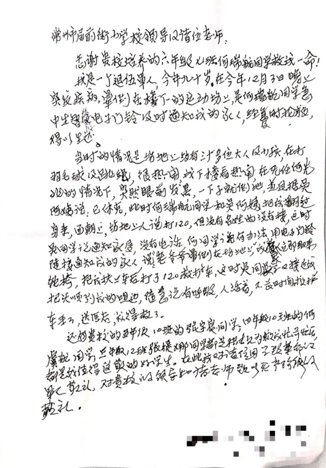 近日,常州市局前街小学收到了一封曹女士代表其父亲送来的感谢信,曹女士在送信时感激地说道:“我一定要来把这封感谢信送到学校来,那天如果没有局小的孩子们,后果难以想象啊……”