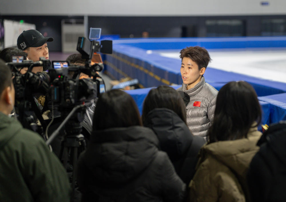 1月21日,中国短道速滑国家集训队队员孙龙接受媒体采访。新华社记者 孙非 摄