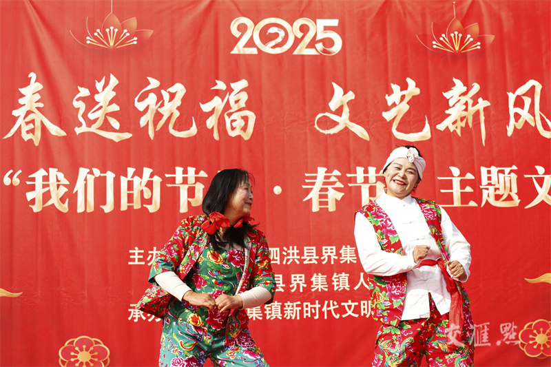1月22日,泗洪县界集镇组织文艺爱好者表演节目,给居民送上“文化年货”。许昌亮摄 视觉江苏网供图