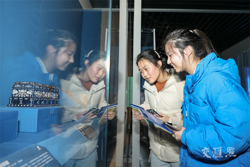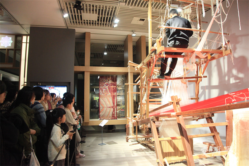 1月22日,“锦绣江南——中国传统织绣工艺的巅峰创造”在南京博物院开展。展览通过“织·神机妙算”“绣·巧夺天工”“染·五色斑斓”3个主要单元,选取宋代以来江南地区的精美纺织文物和非遗展品进行展示,吸引市民前来参观。刘建华摄 视觉江苏网供图