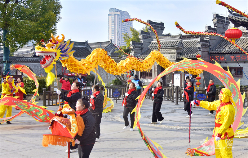 1月22日,“灵蛇献瑞 喜迎新春”民俗活动在如皋市水绘园风景区东大门广场举行,吸引市民和游客前来观赏。吴树建摄 视觉江苏网供图