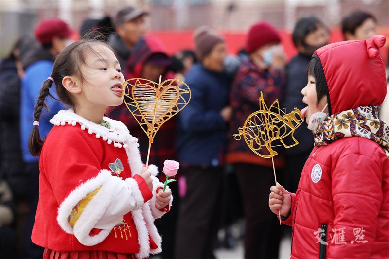 1月22日,连云港市连云区海州湾街道营山社区举办“我们的节日·欢乐中国年”新春文化集市,扭秧歌、摇花船、画糖画等传统民俗活动,营造浓浓的年味。朱华南 李敏艺摄 视觉江苏网供图