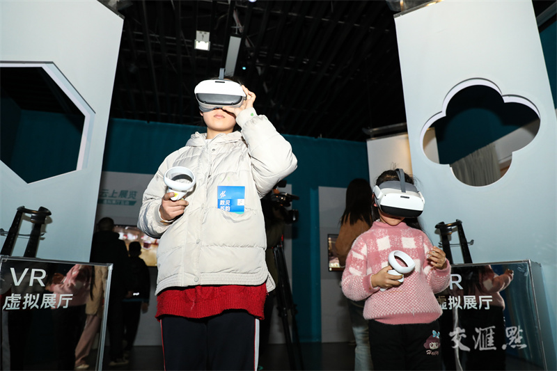 1月22日,“数见苏韵·家门口看大展”在常州博物馆开展。“数见苏韵·家门口看大展”为环省巡展,汇集来自全省各馆的20余件珍贵文物以及相关图文内容。此次展览融合了集成裸眼3D、虚拟现实、AI数字人物互动等新技术。王锐摄 视觉江苏网供图