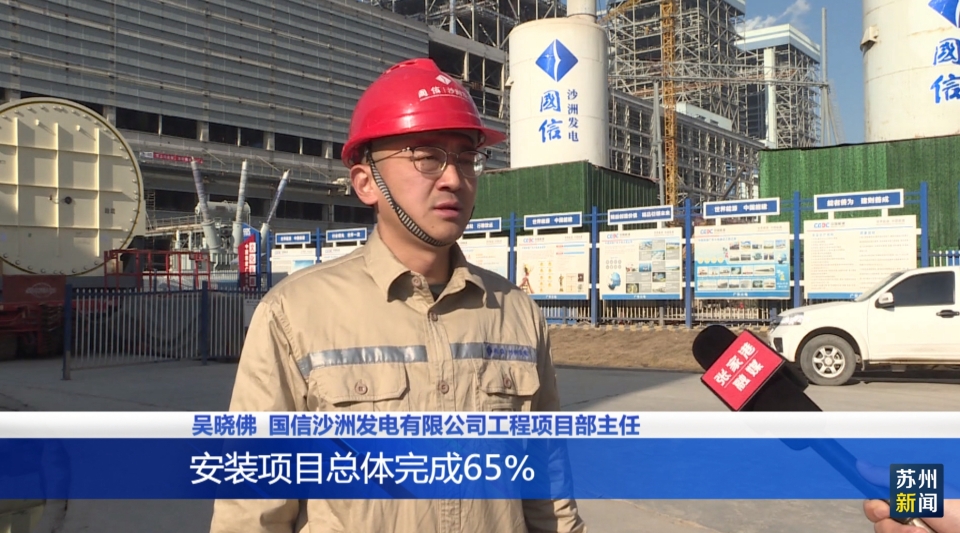 国信沙洲发电有限公司工程项目部主任吴晓佛介绍,土建项目总体完成90%,安装总体完成65%,第一台机组锅炉、汽轮机、发电机、主变等主设备已经安装完成,辅助设备安装完成95%,第二台机组已经进入全面安装阶段。