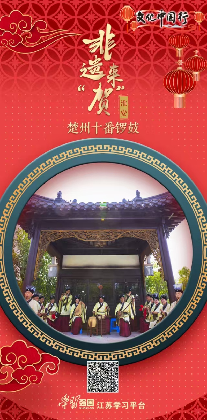 2024年12月4日,“春节——中国人庆祝传统新年的社会实践”项目入选联合国教科文组织人类非物质文化遗产代表作名录。2025年乙巳蛇年,我们迎来第一个世界非遗版春节。为进一步弘扬中华优秀传统文化,欢庆乙巳蛇年的到来,“学习强国”江苏学习平台联动13市平台(通讯站)共同制作系列视频《非遗来“贺”》,邀您共赴“非遗盛宴”,有声有色赏非遗,有滋有味过大年。今日推出《淮安:楚州十番锣鼓》篇,一起热“闹”新春。