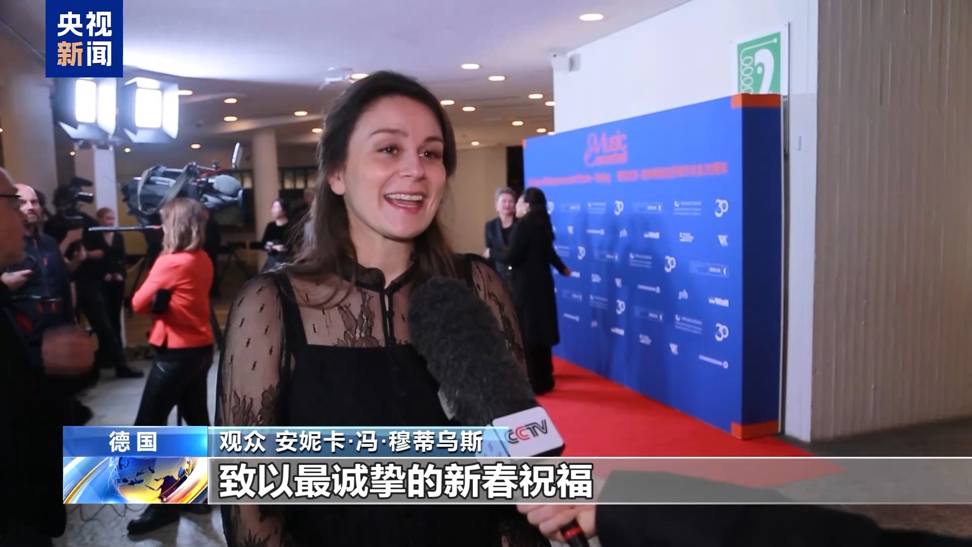 观众 安妮卡·冯·穆蒂乌斯:我要向中国朋友致以最诚挚的新春祝福,我很高兴能一起庆祝春节。