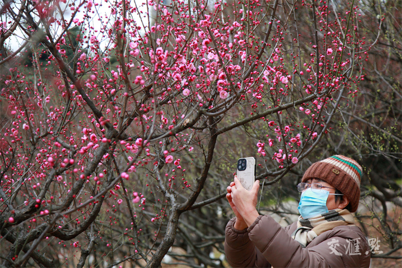 1月25日,游人在南京古林公园赏梅拍照。近日,南京古林公园里的梅花绽放,吸引游人前来观赏。刘建华摄 视觉江苏网供图