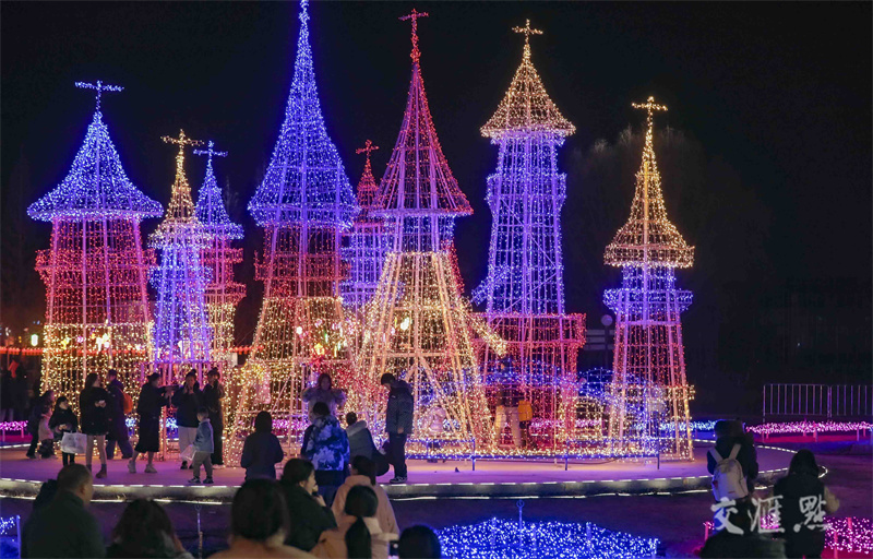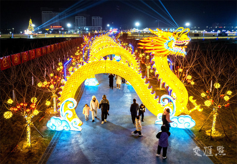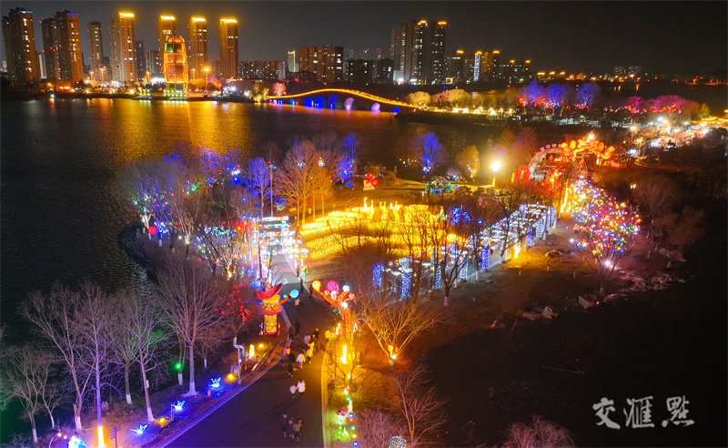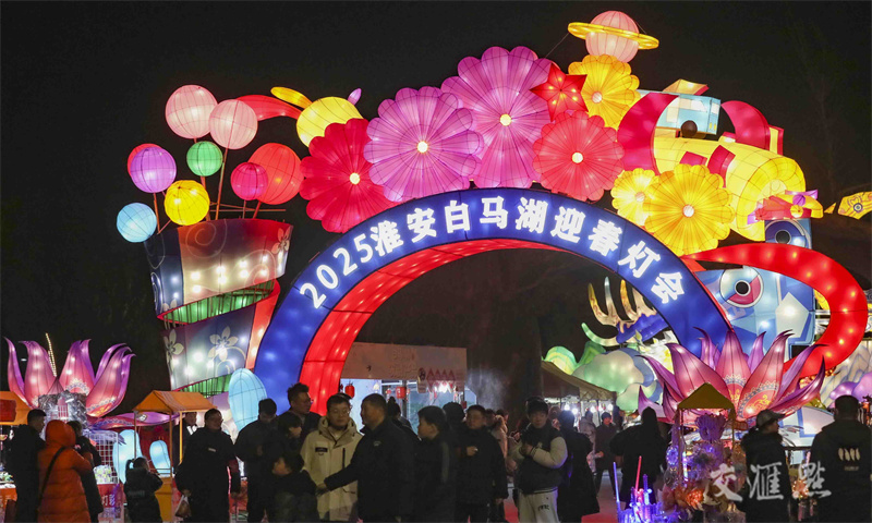 1月22日,淮安白马湖生态旅游景区2025迎春灯会亮灯,花灯造型各异,灯光璀璨,营造欢乐喜庆氛围,吸引游客前来赏灯游玩。赵启瑞摄 视觉江苏网供图