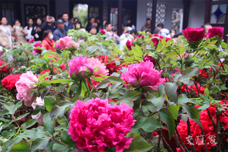1月24日,苏州古典园林狮子林摆放的牡丹争奇斗艳,吸引游客驻足观赏。王建康摄 视觉江苏网供图