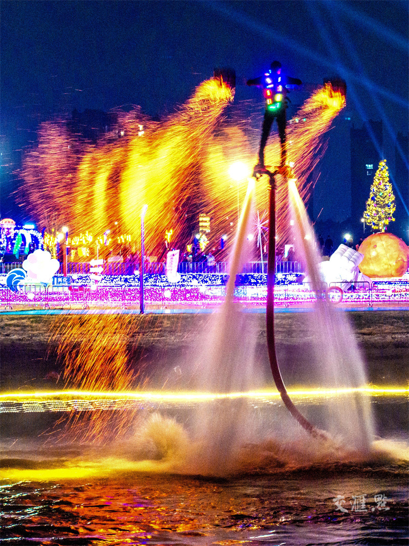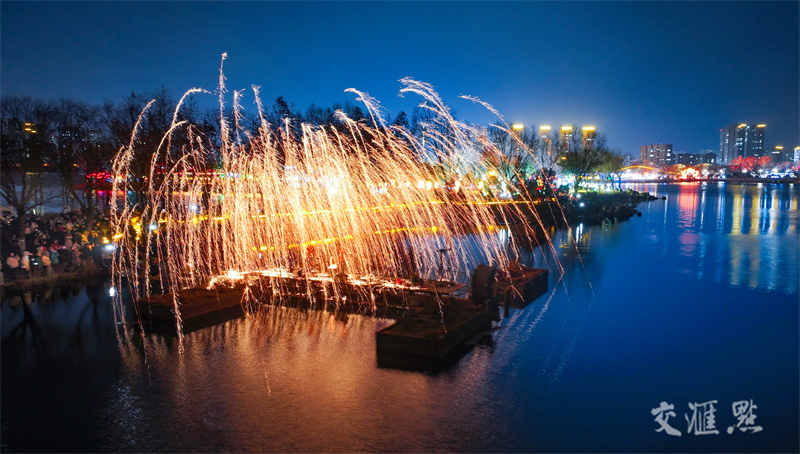 1月24日晚,东海县西双湖景区2025年新春灯会启幕,各式彩灯纷纷亮起,灯光秀、打铁花等表演吸引市民和游客的目光。李娇摄 视觉江苏网供图