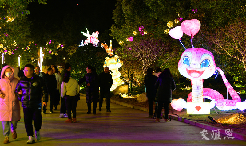 1月25日,“金蛇贺岁 点靓兴化”新春灯会在兴化市莲溪湖公园启幕,吸引市民前来观灯赏景,欢欢喜喜迎接新春佳节。周社根摄 视觉江苏网供图