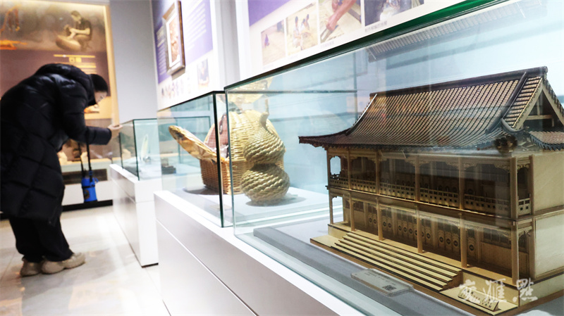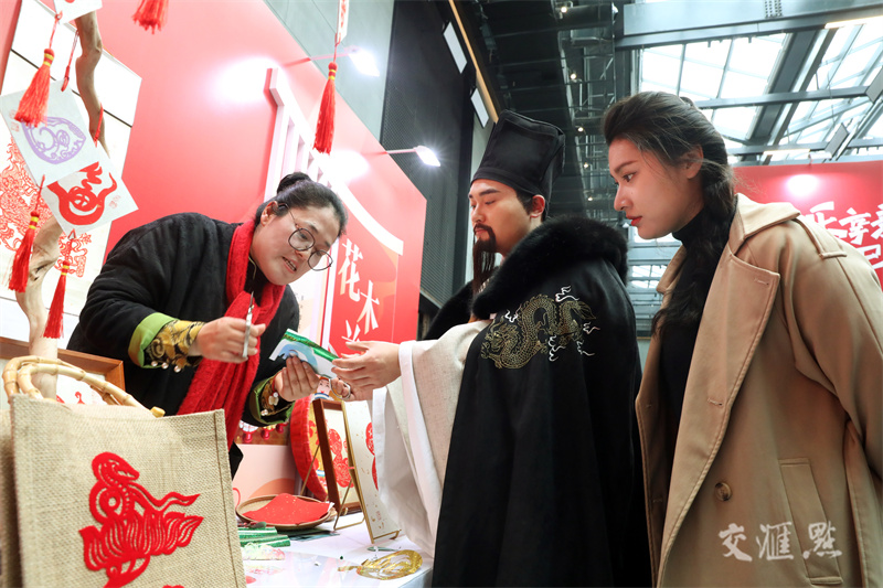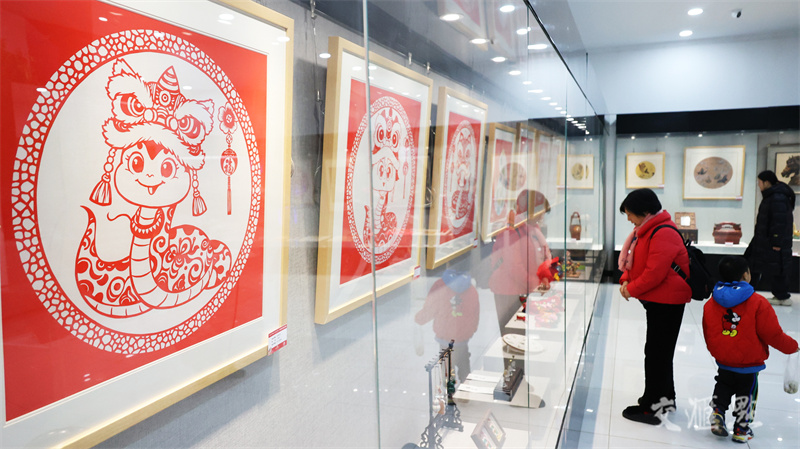 1月24日,连云港市,“金蛇纳福 巳巳如意”迎新春非遗主题展开展,传统美术类、传统技艺类、民俗类等近10个类别约500件非遗展品集中亮相,吸引市民前来参观。耿玉和摄 视觉江苏网供图