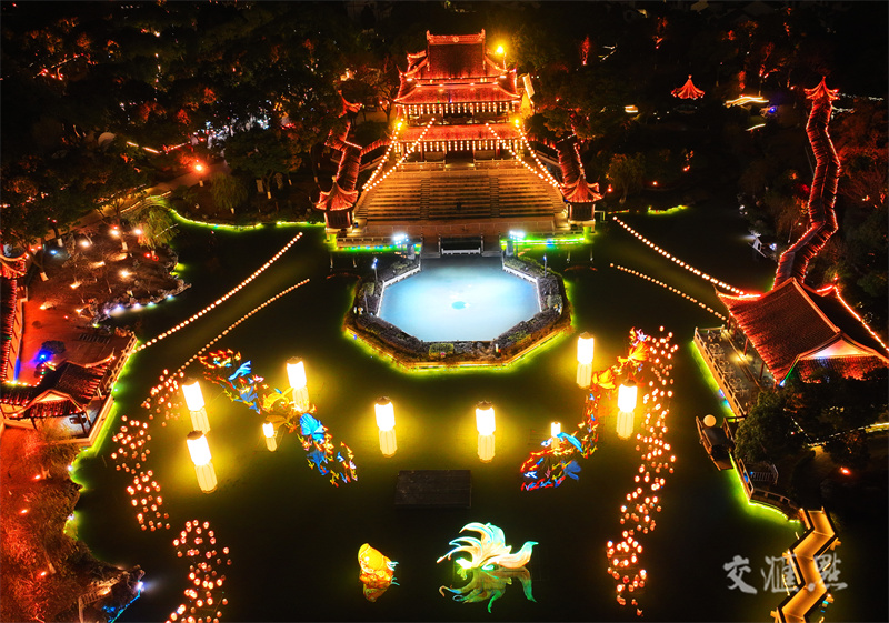 1月25日晚,海安新春灯会在江淮文化园内亮灯,22个大型灯组和10处亮化主题区域融合传统民俗、海安文化特色等多种元素,吸引市民和游客前来观赏。顾华夏摄 视觉江苏网供图