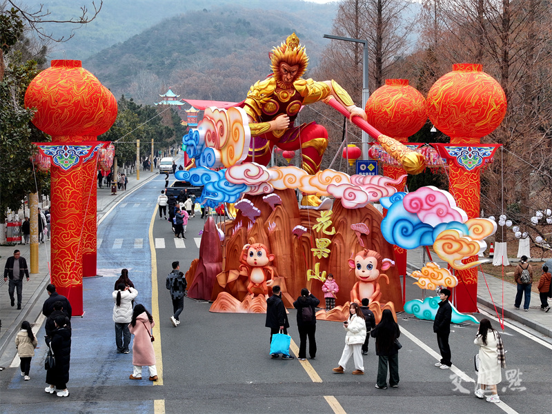 1月23日,连云港市花果山风景区张灯结彩,年味浓浓,吸引游人前来游览赏景。王春 孙艺菡摄 视觉江苏网供图