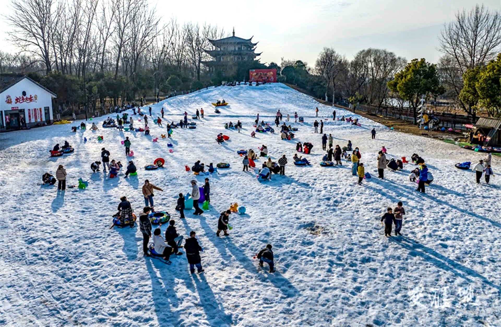 1月22日,淮安市,游人在古淮河生态公园冰雪乐园,享受冰雪运动乐趣。张照久摄 视觉江苏网供图